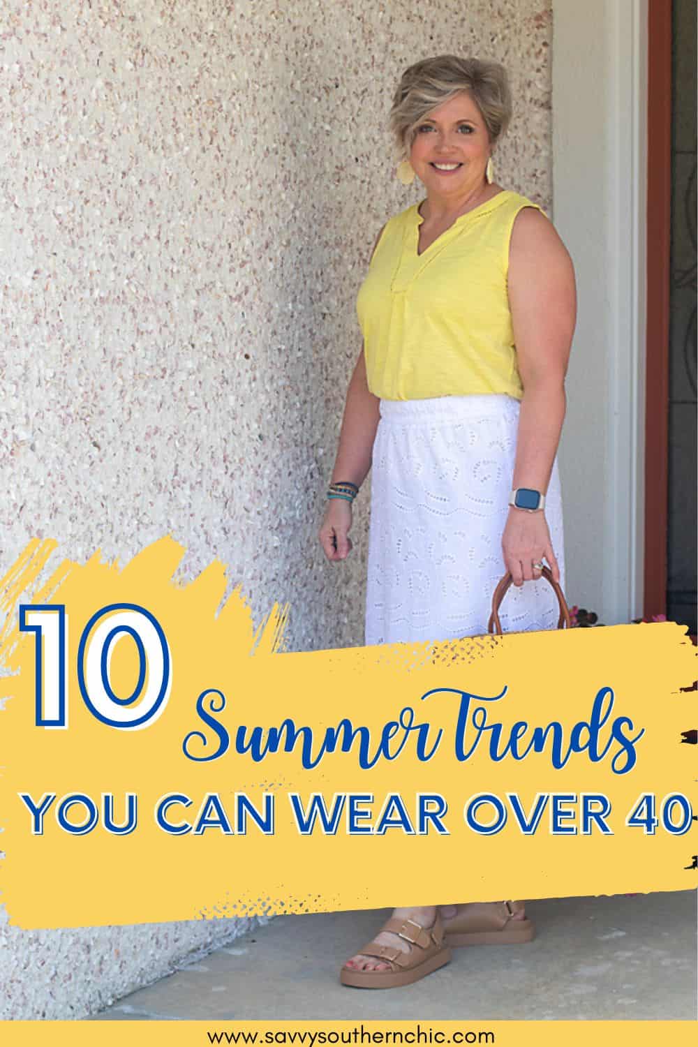 A little white dress has long been a summer staple, as well as a maxi skirt in any color, but white dresses and white skirts are really having a moment. This is certainly a summer fashion trend you can wear over 40. If bright white isn’t best for you, forgo a dress and opt for a trendy white maxi or midi skirt