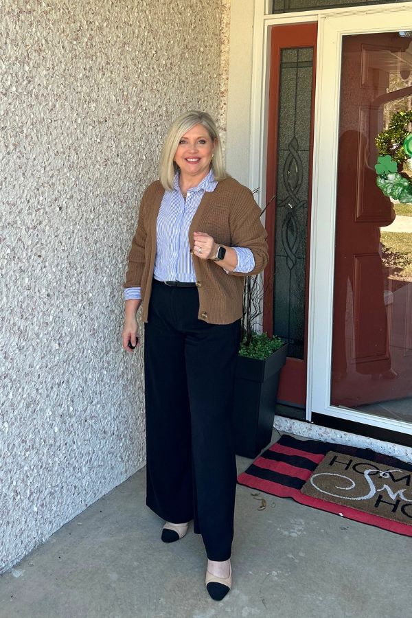 You can also keep the brown and black combo on top, or spread throughout the outfit.